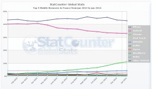 Statistique d’utilisation des navigateurs en france pour les mobile en France.