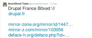 tweet du groupe ayant piraté le site drupal